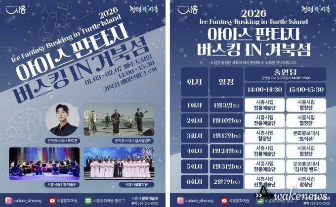 어웨이크뉴스 오경하 기자 | 시흥시는 지난 연말에 진행된 ‘2025 시흥 사운드 오브 윈터’의 열기를 잇는 후속 문화예술 프로그램으로, 겨울철 거북섬을 찾는 시민과 관광객에게 풍성한 즐길 거리를 제공하고자 ‘2026 아이스 판타지 버스킹 인 거북섬’을 운영한다.