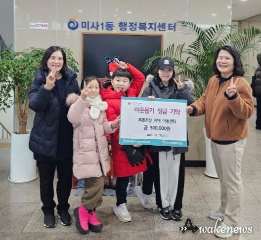 어웨이크뉴스 오경하 기자 | 하남시 미사1동은 푸른초장 지역아동센터가 2025년 12월 31일, 센터 아동들이 고사리손으로 정성껏 모은 성금 30만 원을 미사1동 행정복지센터에 기탁했다고 밝혔다.