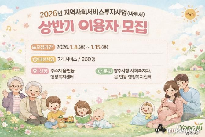 어웨이크뉴스 오경하 기자 | 양주시가 2026년 1월 8일부터 1월 15일까지 지역사회서비스투자사업 이용자를 모집한다.