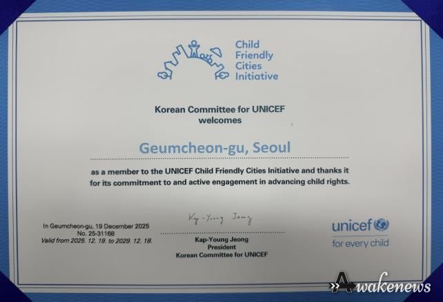 어웨이크뉴스 오경하 기자 | 금천구는 유니세프 한국위원회로부터 아동친화도시 재인증을 획득했다고 7일 밝혔다.