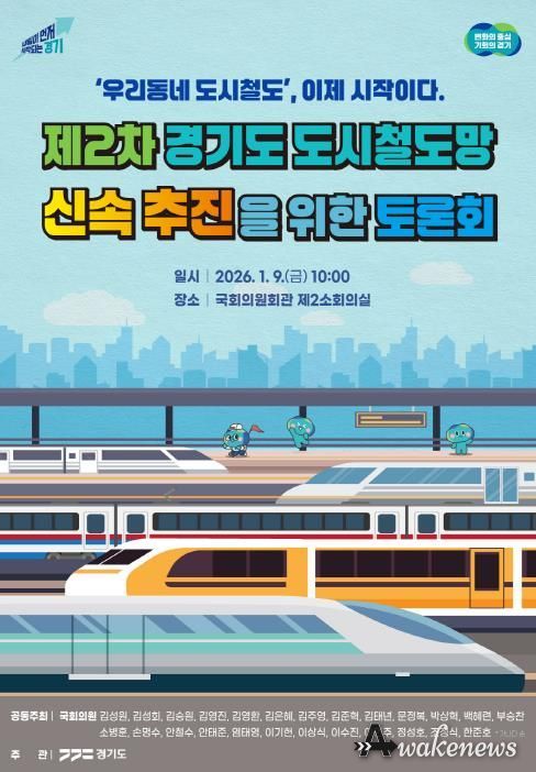 어웨이크뉴스 오경하 기자 | 경기도가 ‘제2차 경기도 도시철도망 구축계획(′26~′35)’에 반영된 사업들의 실질적인 추진 방안 논의를 위해 9일 국회의원회관 제2소회의실에서 국회토론회를 연다.