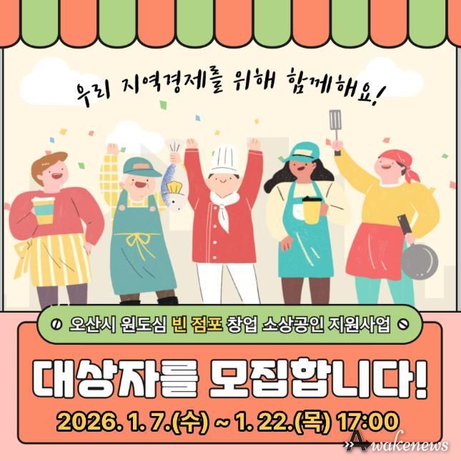 민생경제과 관계자는 “오산역 인근 원도심 상권에서 창업을 계획하고 있는 소상공인들의 많은 관심과 적극적인 참여를 바란다”고 전했다.