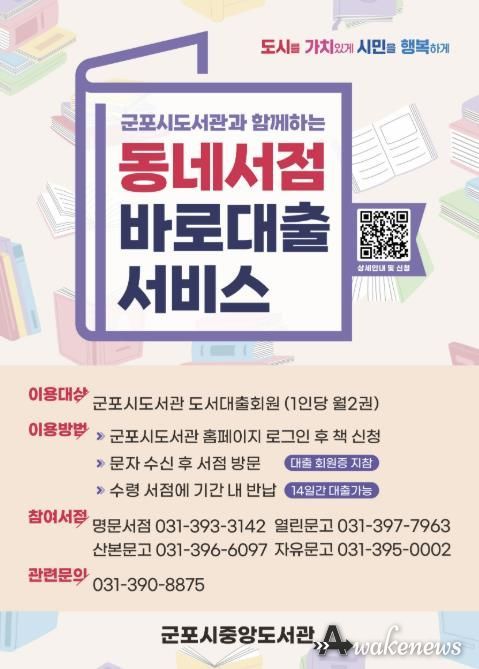 어웨이크뉴스 오경하 기자 | 군포시도서관은 1월 2일부터 ‘2026년 동네서점 바로대출 서비스’ 운영을 재개한다고 밝혔다.