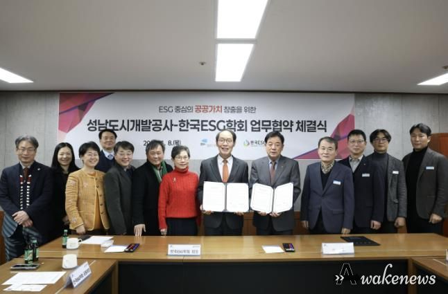 어웨이크뉴스 오경하 기자 | 성남도시개발공사는 지난 8일 한국ESG학회와 ESG경영 실천 문화 확산과 지속가능한 공공가치 창출을 위해 업무협약(MOU)을 체결했다고 9일 밝혔다.