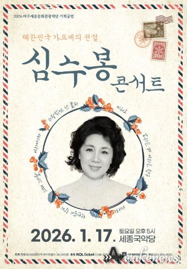 여주세종문화관광재단 이순열 이사장은 “연륜으로 다져진 거장의 무대로 2026년 세종국악당 공연의 포문을 연다. 이번 ‘심수봉 콘서트’를 시작으로 올해도 남녀노소 누구나 즐길 수 있는 다채로운 공연들로 준비하고 있으니 여주시민들의 많은 관심 바란다.”라고 밝혔다.