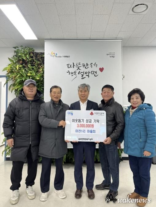 이동철 설악면장은 “안치왕 이장님과 김경선 새마을지도자, 안병도 노인회장님을 비롯한 이천1리 주민 여러분의 소중한 나눔에 진심으로 감사드린다”며 “기탁해 주신 성금이 꼭 필요한 분들에게 소중하게 전달될 수 있도록 하겠다”고 밝혔다.