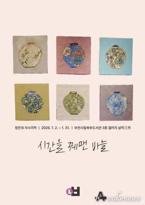 어웨이크뉴스 오경하 기자 | 부천시는 이달 31일까지 북부도서관 3층 ‘삼작’ 갤러리에서 서양자수 전시 ‘시간을 꿰맨 바늘’을 운영한다. 전시는 정은희 작가의 작품 16점을 중심으로 구성됐다
