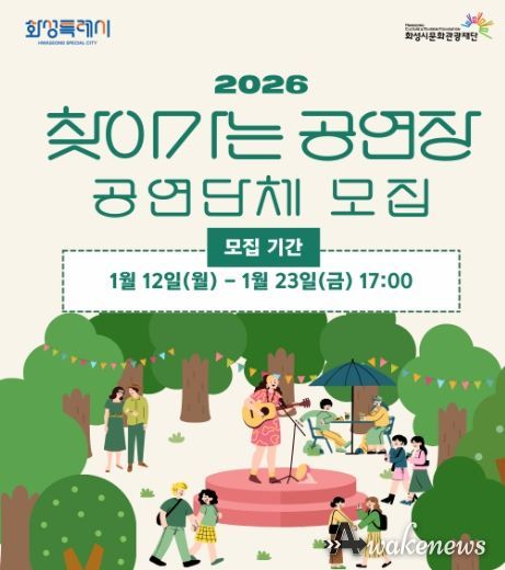 어웨이크뉴스 오경하 기자 | (재)화성시문화관광재단은 1월 12일부터 1월 23일까지 ‘2026 찾아가는공연장’ 참여 공연단체를 모집한다고 밝혔다.