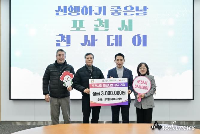 어웨이크뉴스 오경하 기자 | 포천시는 지난 12일 시청 시정회의실에서 ‘선행하기 좋은 날, 포천시 천사데이’ 이웃돕기 기탁식을 개최했다.