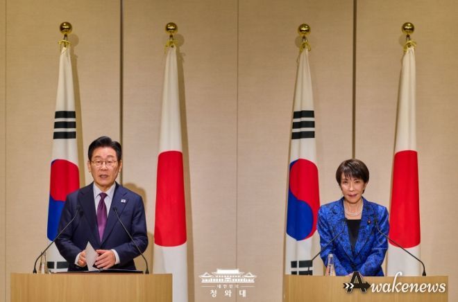 어웨이크뉴스 오경하 기자 | 이재명 대통령은 13일 다카이치 사나에 일본 총리와의 정상회담 후 가진 공동언론발표에서 "문명사적 전환기 속에서 한일 양국이 협력의 깊이를 더하고 그 범위를 넓혀 나가는 일은 더 이상 미룰 수 없는 시대적 과제"라고 밝혔다.