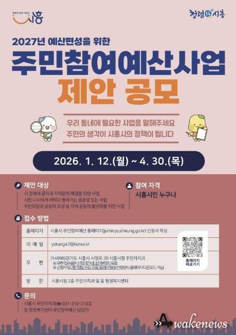 어웨이크뉴스 오경하 기자 | 시흥시는 오는 4월 30일까지 주민들이 직접 사업을 제안하는 ‘시흥시 주민참여예산 제안’을 신청받는다.