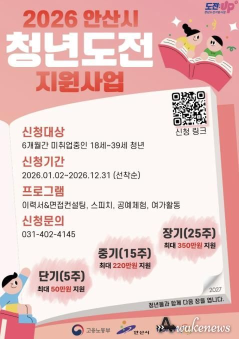 어웨이크뉴스 오경하 기자 | 안산시가 구직 청년들의 사회 진입과 취업을 지원하기 위해 청년도전 지원 사업 참여자를 모집한다고 15일 밝혔다.