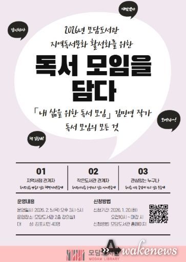 어웨이크뉴스 오경하 기자 | 김포시 모담도서관은 독서 모임을 주제로 2월 5일 목요일 오후 3시부터 5시까지 저자 강연을 운영한다.