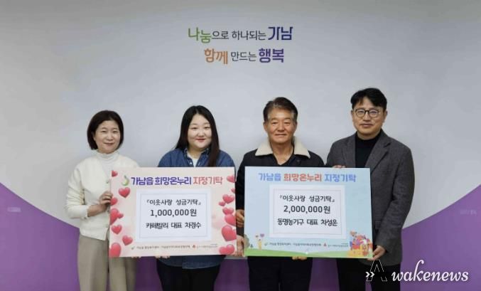 어웨이크뉴스 오경하 기자 | 여주시 가남읍 행정복지센터은 지난 15일, 관내 사업체인 동명농기구와 카페 발리에서 지역 내 취약계층을 위한 이웃돕기 성금을 기탁했다고 밝혔다.