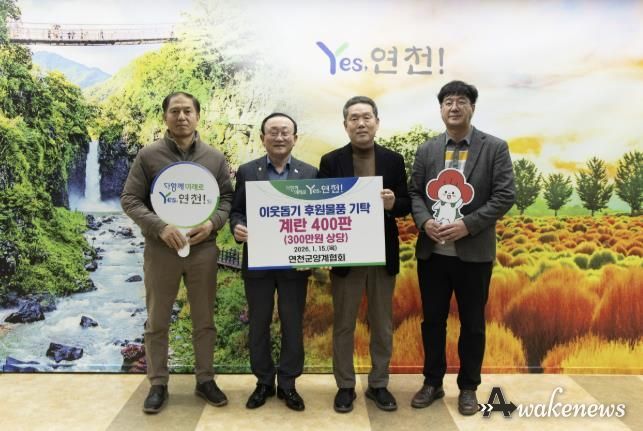 어웨이크뉴스 오경하 기자 | 연천군양계협회는 지난 15일 연천군청을 방문해 지역 내 취약가정을 지원하기 위해 계란 400판(300만원 상당)을 연천군가족센터에 후원물품으로 지정 기탁했다.