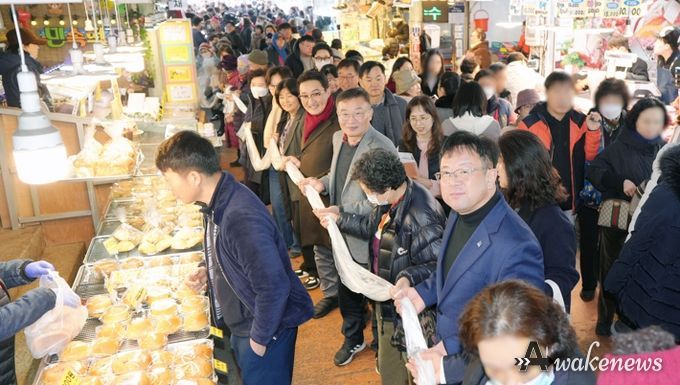 어웨이크뉴스 오경하 기자 | 수원 못골종합시장이 새해를 맞아 16일 전통시장 상인과 시민이 함께하는 ‘가래떡 나눔 행사’를 열었다.