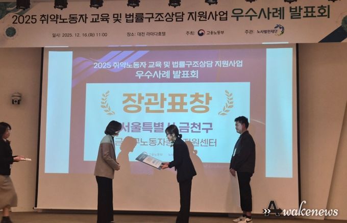 앞서 고용노동부는 부당해고, 보복성 징계, 근무지 강제 변경 등 취약노동자의 권리 침해 사례 해결 과정과 구제 성과를 기준으로 ‘2025년 노동약자 교육 및 법률구조상담 지원사업’에 대한 평가를 진행했다. 그 결과 전국 지자체 중 금천구와 음성군이 법률구조상담 대표 우수사례로 선정됐다.