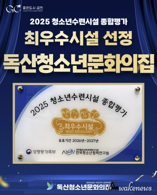 어웨이크뉴스 오경하 기자 | 금천구는 독산청소년문화의집이 성평등가족부 주관 ‘2025년 청소년수련시설 종합평가’에서 최우수기관으로 선정됐다고 밝혔다.