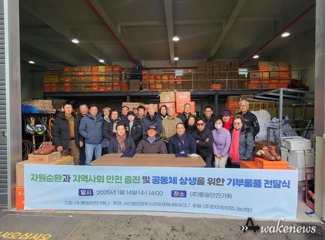 어웨이크뉴스 오경하 기자 | 파주시는 지난 14일, 사회적기업 ㈜통일안전기획이 기부한 안전화 3,000켤레를 ㈔파주시공유경제네트워크가 지역 수요에 맞춰 배분하는 전달식을 진행했다고 밝혔다.