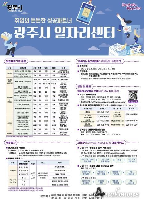 어웨이크뉴스 오경하 기자 | 광주시는 구인 기업과 우수 인재 간 성공적인 연결을 통해 시민들에게 양질의 일자리를 제공하기 위해 ‘2026년 광주시 일자리센터 운영 계획’을 확정하고 취업 상담부터 일자리 알선, 취업 교육, 채용행사까지 종합적인 고용 지원에 나선다고 19일 밝혔다.