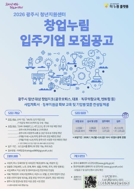 어웨이크뉴스 오경하 기자 | 광주시는 지역 내 유망한 청년 창업가를 발굴하고 안정적인 창업 환경을 조성하기 위해 ‘2026년도 창업누림 신규 입주기업’을 공개 모집한다고 19일 밝혔다.