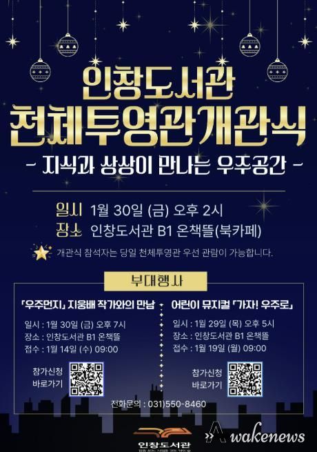 어웨이크뉴스 오경하 기자 | 구리시는 오는 1월 30일 오후 2시 인창도서관 지하 북카페에서 주요 내빈이 참석한 가운데 4층 야외에 조성된 인창도서관 천체투영관 개관식을 개최한다고 밝혔다.