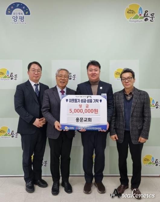 어웨이크뉴스 오경하 기자 | 양평군 용문면은 지난 16일 용문교회가 관내 어려운 이웃을 돕기 위해 이웃돕기 성금 500만 원을 기탁했다고 밝혔다.