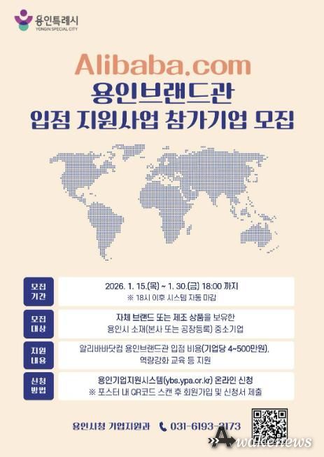 어웨이크뉴스 오경하 기자 | 용인특례시는 오는 1월 30일까지 B2B(기업 간 거래) 플랫폼 알리바바닷컴 내 ‘용인브랜드관’(YoGo) 입점 참가기업을 모집한다고 20일 밝혔다.