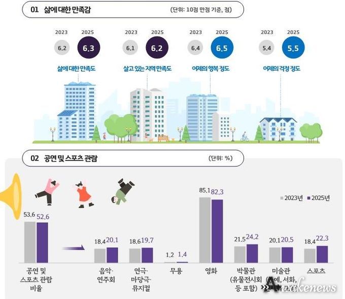 이번 결과는 2021년부터 2025년까지 삶의 만족·행복감, 여가·문화·관광 참여, 생활·안전 인식, 경제 체감 전반에서 완만하지만 일관된 개선 흐름을 보이는 점이 특징이다.