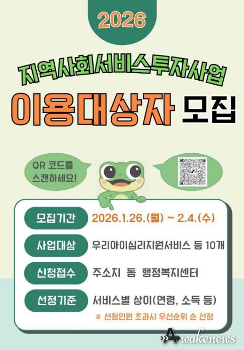 어웨이크뉴스 오경하 기자 | 수원특례시는 1월 26일부터 2월 4일까지 ‘2026년 지역사회 서비스 투자사업’ 이용자를 모집한다.