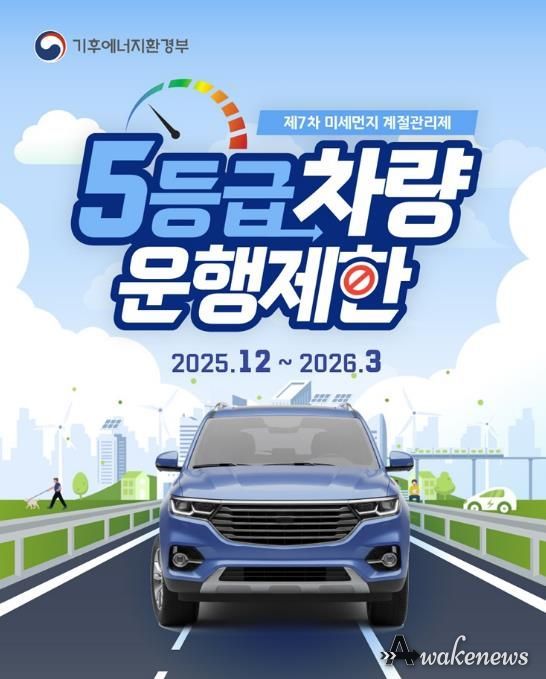어웨이크뉴스 오경하 기자 | 파주시는 제7차 계절관리제 기간인 2025년 12월부터 2026년 3월까지 배출가스 5등급 차량에 대한 단속을 실시하고 있다.