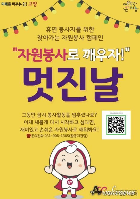어웨이크뉴스 오경하 기자 | 고양시자원봉사센터는 휴면 봉사자들의 자원봉사활동 참여 촉진을 위한 ‘자원봉사로 깨우자 멋진날’참여자를 상시 모집한다고 20일 밝혔다.
