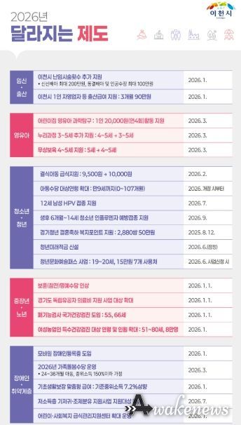 어웨이크뉴스 오경하 기자 | 이천시가 2026년 새해를 맞아 시민 생활과 밀접한 달라지는 제도를 발표했다.