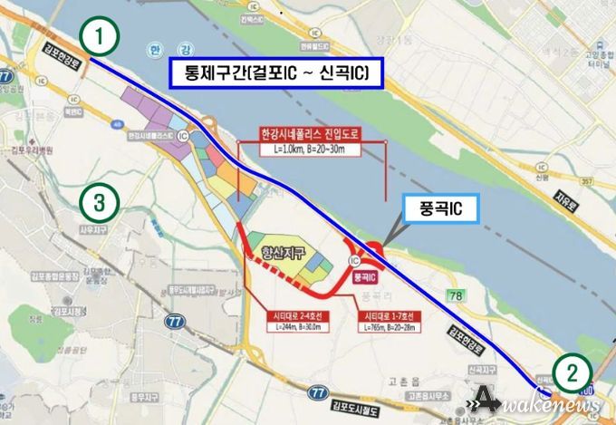 어웨이크뉴스 오경하 기자 | 김포시는 1월 24일 24시 자정부터 1월 25일 오전 6시까지 김포한강로 걸포IC ~ 신곡IC 구간에 대해 주말 심야 시간대 전면 교통통제를 시행한다고 밝혔다. 아울러, 금포로 일부 구간(고촌읍 풍곡리 20-9번지 일원)도 같은 시간 동안 통제될 예정이다.