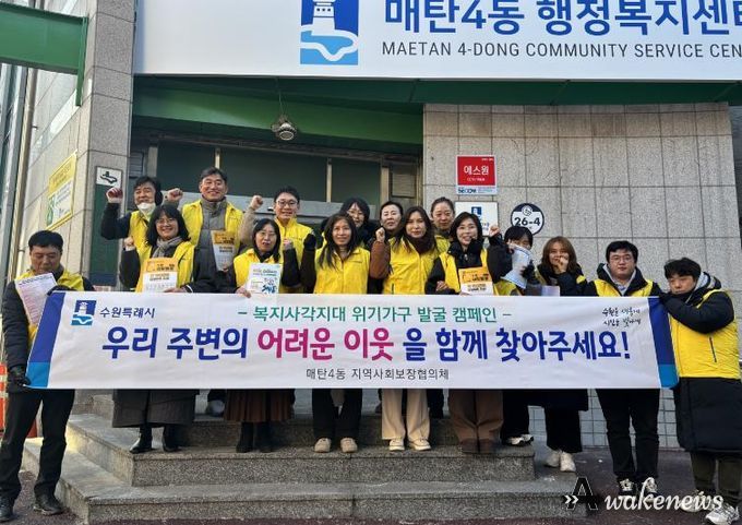 오미숙 매탄4동장은 “매탄4동 행정복지센터는 앞으로도 지속적인 위기가구 발굴 활동을 통해 동절기 복지 안전망 구축에 힘쓰겠다”며 “추운 날씨에도 캠페인에 적극 참여해 주신 지역사회보장협의체 위원님들께 감사드린다”고 밝혔다.