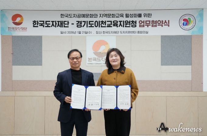 어웨이크뉴스 오경하 기자 | 이천교육지원청은 1월 21일 한국도자재단과 이천시 관내 문화예술교육사업 및 학교교육프로그램 활성화를 위한 업무협약을 체결했다.