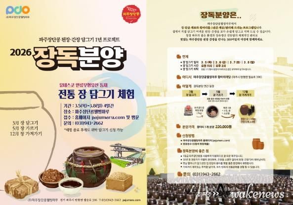 어웨이크뉴스 오경하 기자 | 파주시 출자기관인 ㈜파주장단콩웰빙마루에서는 2026 장독분양 신청자를 본격 모집한다.