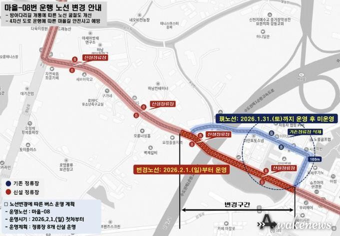 기존 노선은 2026년 1월 31일까지 운영되며, 2월 1일 첫차부터는 변경된 노선으로 본격적인 운행을 시작한다.