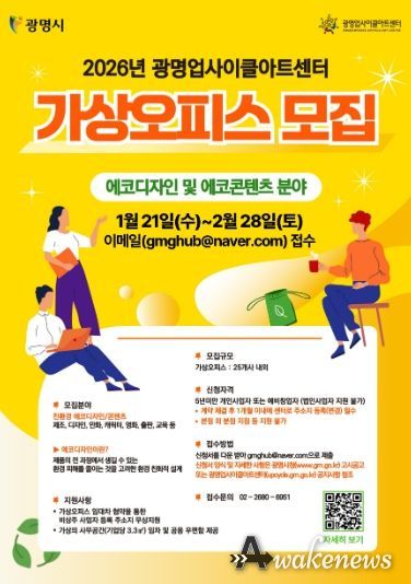 어웨이크뉴스 오경하 기자 | 광명시 광명업사이클아트센터는 오는 2월 28일까지 ‘2026년 상반기 가상오피스 지원사업’ 입주 기업을 모집한다.