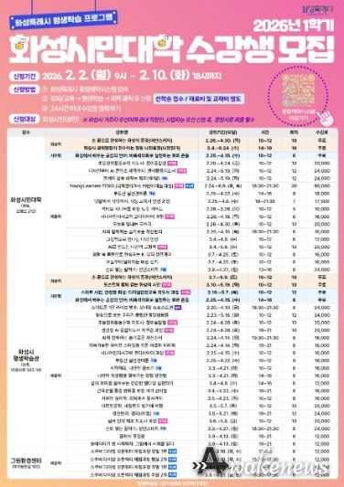 어웨이크뉴스 오경하 기자 | 화성특례시는 2026년 1학기 화성시민대학 수강생을 다음 달 2일부터 10일까지 선착순 모집한다고 27일 밝혔다.