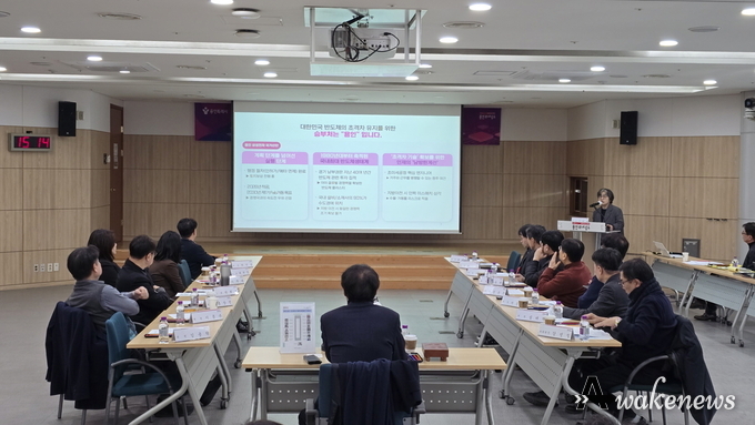 ▲용인특례시의 반도체산업 경쟁력강화위원회 어웨이크뉴스 오경하 기자 | 용인특례시(시장 이상일)의 반도체산업 경쟁력강화위원회(이하 경쟁력강화위원회)가 용인에 조성 중인 반도체 클러스터 국가산단을 정부가 계획대로 신속하게 추진할 것을 촉구하고 나섰다. 반도체 전문가들로 구성된 이 위원회는 26일 오후 시청 비전홀에서 열린 ‘2026년 제1회 반도체산업 경쟁력강화위원회’에서 대한민국 반도체산업 경쟁력을 키우려면 ‘속도’와 ‘정책의 신뢰성’이 뒷받침돼야 한다고 강조했다. 경쟁력강화위원회 측은 ‘용인 반도체 국가산단 지방 분산’ 논란에 대해 깊은 우려를 표하고, ‘AI초강대국 도약’이라는 정부의 국가적 비전에 맞춰 대한민국 반도체산업의 골든타임을 지켜내기 위해 성명을 발표했다고 설명했다. 경쟁력강화위원회는 성명서를 통해 연구개발과 생산현장의 물리적 거리는 반도체산업 경쟁력 저하로 이어질 것이라고 설명했다. 반도체 초미세 공정의 성공은 연구개발과 생산라인의 즉각적 대면 미팅을 통한 피드백에 달려 있고, 생산시설을 물리적으로 분리하면 기술 개발 속도 저하와 고객 대응 문제가 발생해 글로벌시장 선점 기회를 상실할 수 있다는 것이다. 또, 용인의 반도체 클러스터 구축은 전국