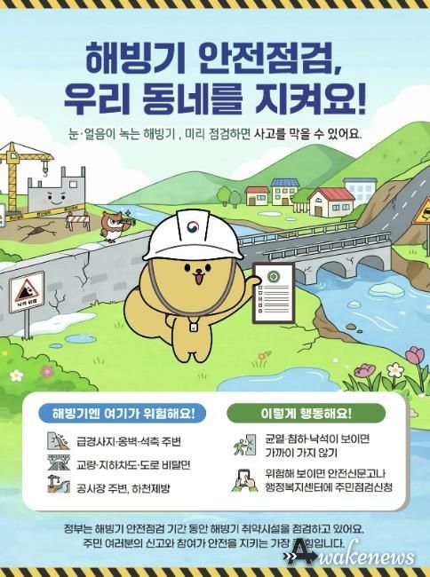 어웨이크뉴스 오경하 기자 | 수원특례시는 해빙기 안전사고 예방을 위해 ‘해빙기 취약시설 주민점검신청제’에 따른 주민 신청을 2월 2일부터 13일까지 받는다.