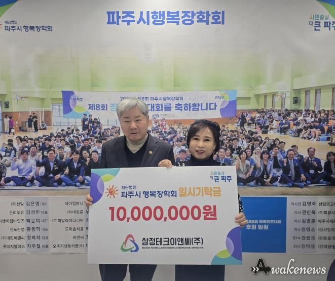 어웨이크뉴스 오경하 기자 | 파주시는 (재)파주시행복장학회가 삼정테크이앤씨㈜로부터 일시기탁금 1천만 원을 전달받았다고 밝혔다.
