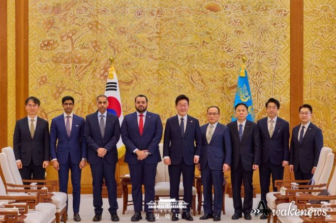 어웨이크뉴스 오경하 기자 | 이재명 대통령은 28일 오전 「모하메드 빈 압둘아지즈 알-쿨라이피(Mohammed bin Abdulaziz Al-Khulaifi)」 카타르 국왕 특사를 접견했다.