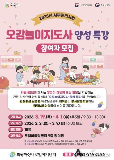어웨이크뉴스 오경하 기자 | 의왕시 여성새로일하기센터가 '오감놀이지도사 양성 특강'의 교육생을 모집한다.
