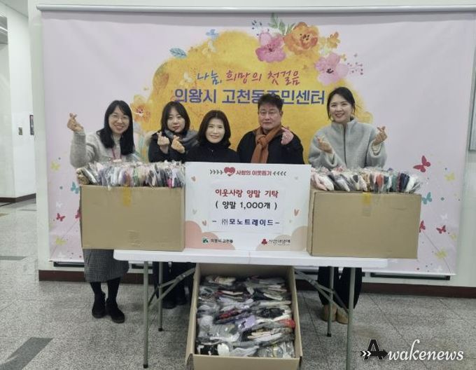 이번에 기탁된 양말은 의왕시 고천동 소재 ㈜모노트레이드에서 전달한 것으로 관내 저소득 가구와 독거노인 등 도움이 필요한 이웃들에게 배부될 예정이다.