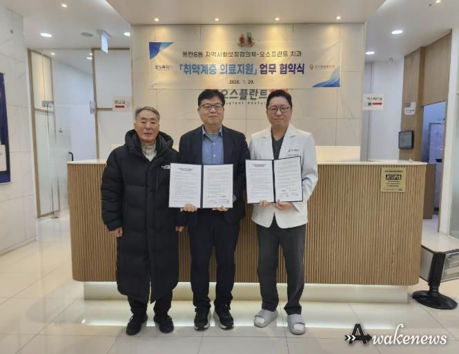 어웨이크뉴스 오경하 기자 | 동탄8동 지역사회보장협의체가 오스플란트 치과, 작은마을한의원와 지난 29일 ‘지역 내 취약계층 건강 증진과 의료 접근성 강화를 위한 의료지원 협약’을 체결했다.