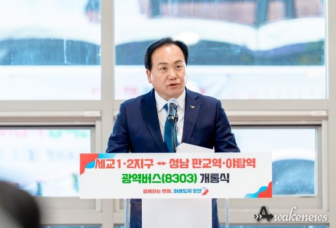 어웨이크뉴스 오경하 기자 | 오산시가 세교신도시 주민들의 교통 편익 증진을 위해 추진해 온 세교 1·2지구↔성남 판교·야탑역 간 광역버스(8303번) 운행을 오는 2일부터 시작한다.