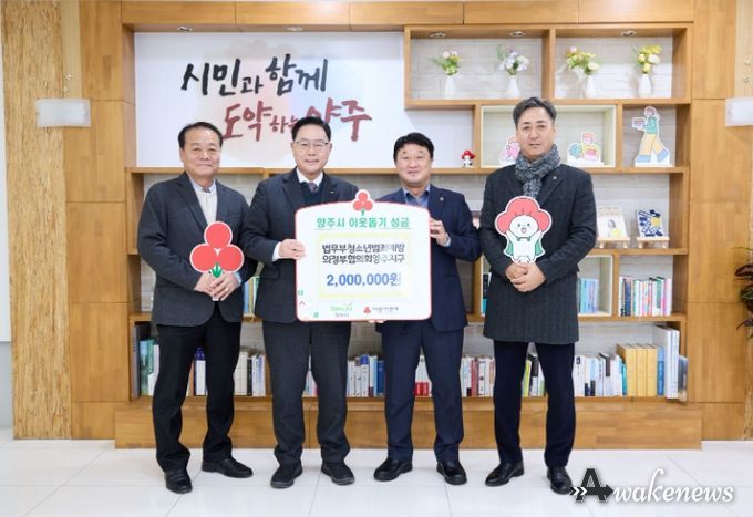 어웨이크뉴스 오경하 기자 | 양주시는 지난 30일 시장실에서 법무부청소년범죄예방 의정부협의회 양주지구로부터 이웃돕기 성금 200만 원을 기탁받았다고 밝혔다.