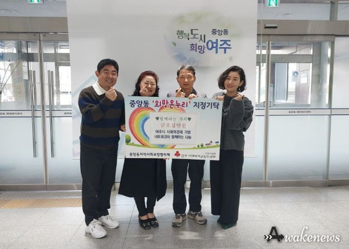 어웨이크뉴스 오경하 기자 | 여주시사회적경제기업네트워크는 지난 30일 중앙동행정복지센터에 성금 50만원을 기탁하며 이웃사랑을 실천했다.